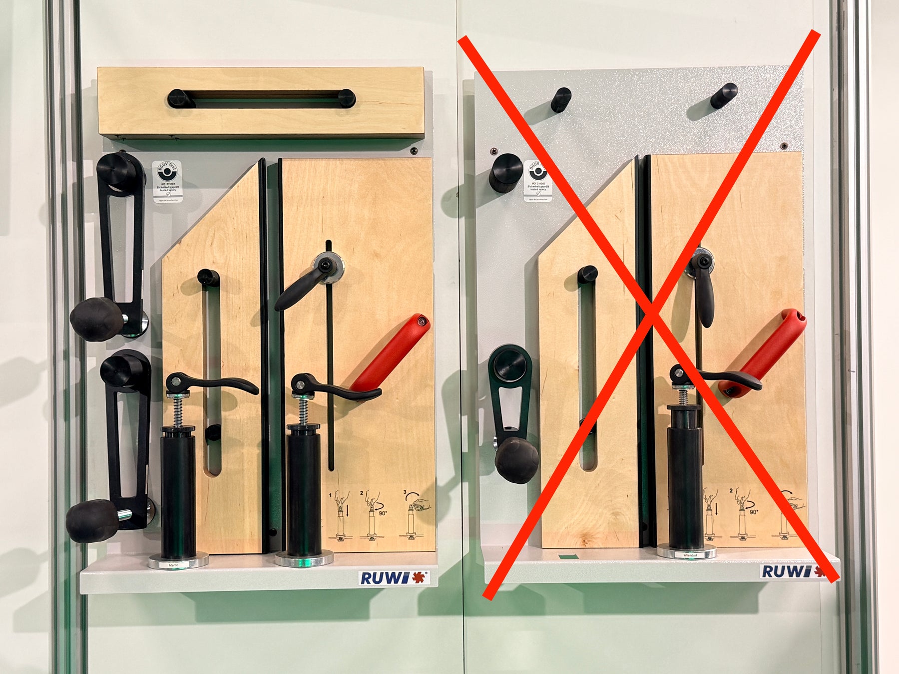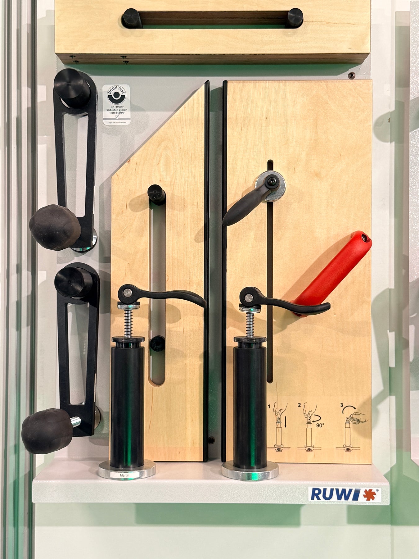 Das RUWI Premium Spann- und Sägesystem für Martin Maschinen vereint maximale Arbeitssicherheit mit hervorragendem Bedienkomfort für professionelle Formatkreissägen. Es schützt dich zuverlässig beim präzisen Zuschneiden kurzer, schmaler, schräger oder keilförmiger Werkstücke. Die werkzeuglose Montage, kombiniert mit praktischen Spannarmen, schmalen Hilfsanschlägen mit Haltespitzen und ergonomischen Schnellspannhebeln, garantiert Effizienz und Stabilität. Ein übersichtliches Ordnungspaneel für die Wandmontage sorgt zusätzlich für schnellen Zugriff und perfekte Ordnung.